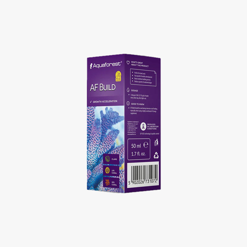 Aquaforest AF Build is a specialized supplement designed to enhance coral growth and maintain optimal pH levels in reef aquariums. It accelerates the absorption of calcium and carbonates essential for the development of stony corals, promoting faster calcification and overall growth.