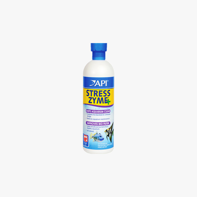 API® STRESS ZYME bacterial cleaner contains over 300 million live bacteria per teaspoonful to consume sludge and reduce aquarium maintenance, keeping your aquarium clean and improving the natural aquarium cycle. Making STRESS ZYME bacterial cleaner part of your tank’s regular upkeep routine assures an active biological filter, a cleaner aquarium, healthier fish, and good water quality. This product may be used in both fresh and saltwater aquariums.