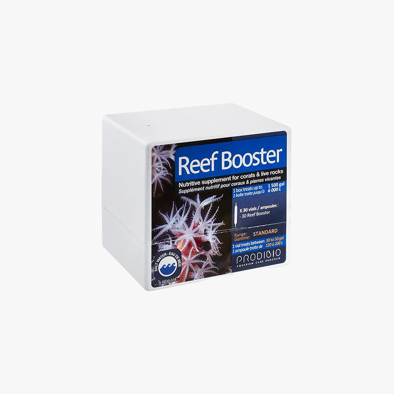 Prodibio Reef Booster is a finely micronized nutritional supplement formulated to support the growth and development of marine invertebrates, including corals and clams. It contains essential elements such as amino acids, omega-3 fatty acids, and vitamins, promoting vibrant health and coloration in your reef aquarium.